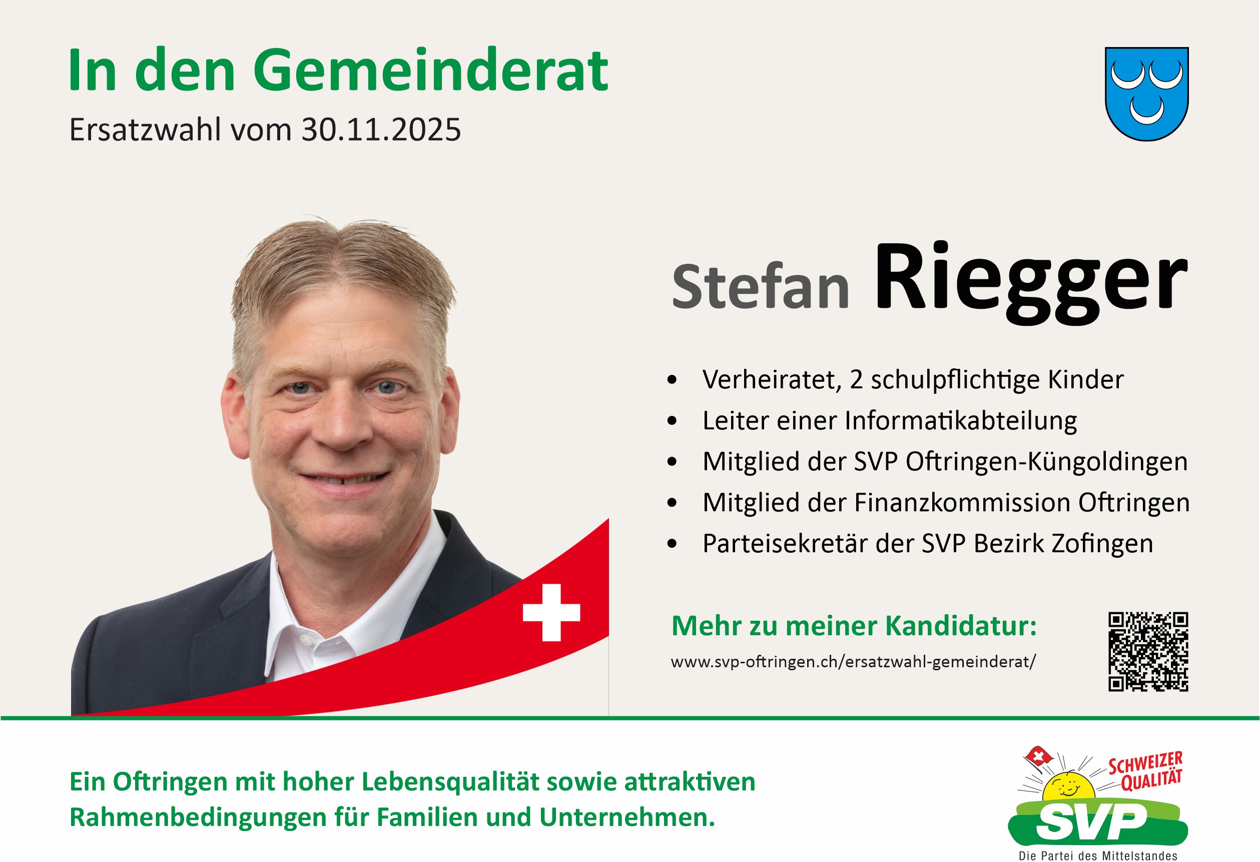 - 25.09.2025 Zofinger Tagblatt: SVP schickt Stefan Riegger ins Rennen